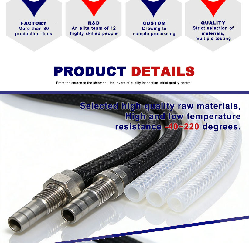 18+ years focusing on outer braided silicone tubes! 7-step strict quality inspection (raw material screening → platinum vulcanization → extrusion → precision braiding → bonding detection → performance testing → packaging) ensures no delamination, high pressure resistance, and stable quality. Trusted by 600+ customers in automotive, industrial, and medical industries worldwide.