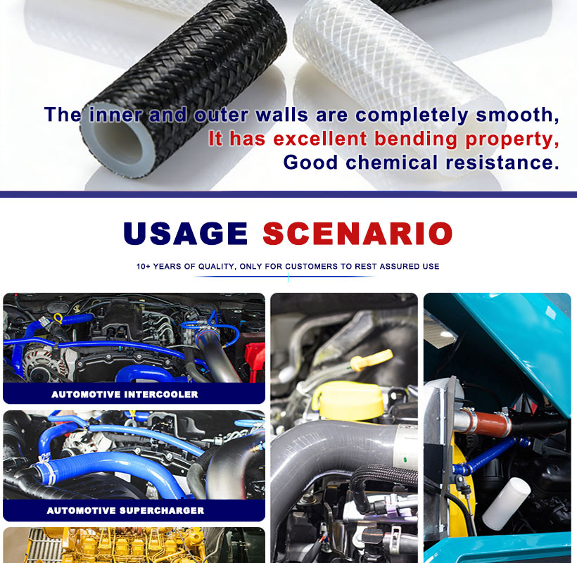 Ideal for automotive cooling, industrial hydraulic, medical sterile fluid, and food processing transmission! One tube integrates high-pressure resistance, high-temperature resistance, flexibility, and safety, solving all your reinforced fluid transmission troubles. Customizable sizes, colors, and braided materials meet personalized needs.