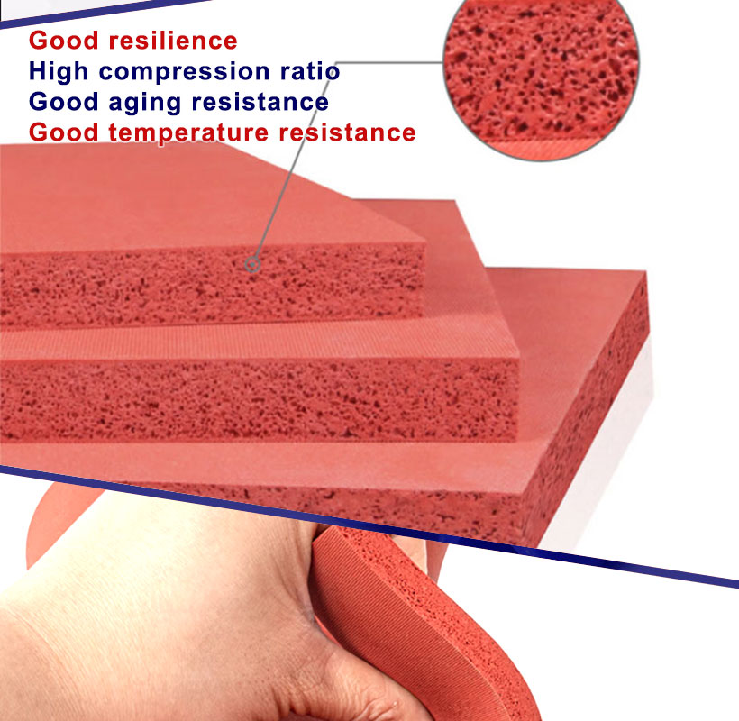 矽橡膠發泡片材是一種具有優異的抗壓縮和永久變形性能的有機矽發泡材料。矽橡膠發泡片材具有耐高低溫(-55-220℃)、高阻燃(V-0)極低煙霧濃度等特點。